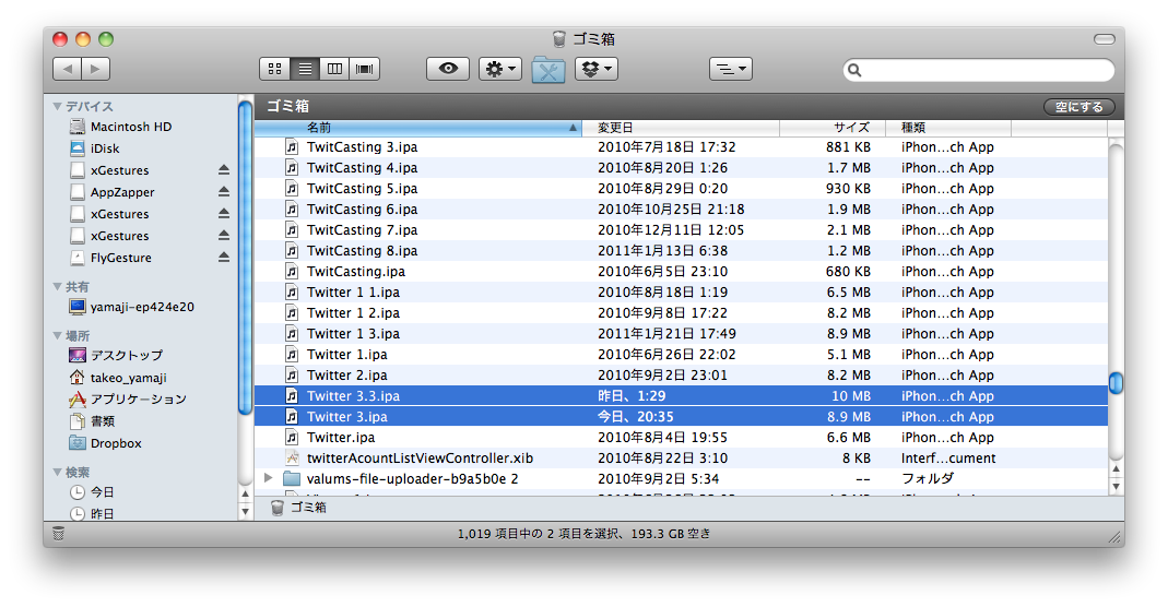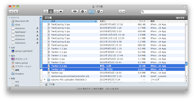 今回は旧バージョンにダウングレードするのが目的なので、「Twitter 3.ipa」をMacの任意の場所に移動する。